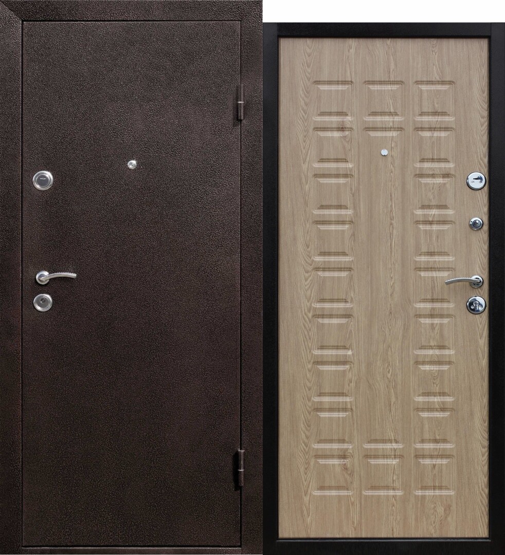 | Фурнитура | Ручка раздельная — хром, глазок широкого обзора — хром, петли — 2 шт., накладки круглые — хром, ночная задвижка, противосъемные штыри — 2 шт. | |