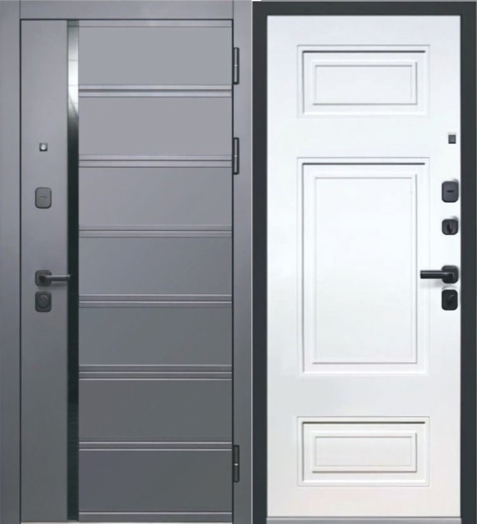 Ручка раздельная — черный, глазок широкого обзора — черный, петли — 3 шт., накладки с защитой от сквозняков — черный, ночная задвижка, противосъемные штыри — 2 шт. |