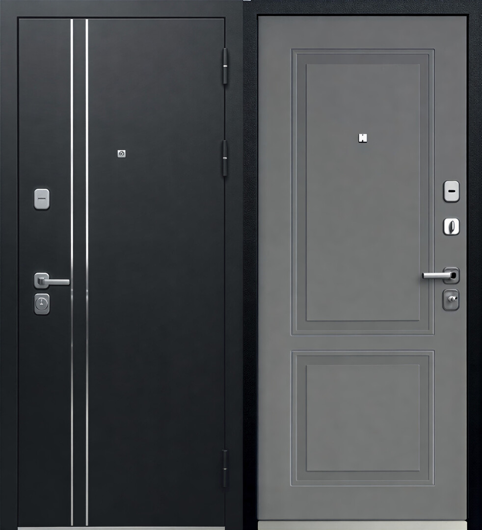 Ручка раздельная — сатин хром, глазок широкого обзора — сатин хром, петли — 3 шт., накладки с защитой от сквозняков — сатин хром, ночная задвижка, противосъемные штыри — 2 шт.