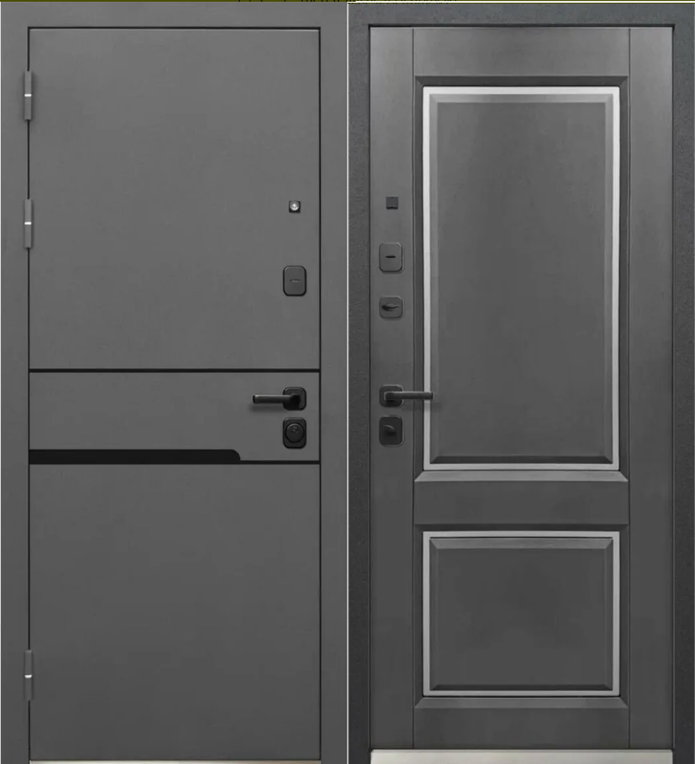 Ручка раздельная — черный, глазок широкого обзора — черный, петли — 3 шт., накладки с защитой от сквозняков — черный, ночная задвижка, противосъемные штыри — 2 шт.