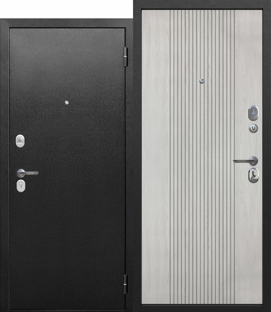 | Фурнитура | Ручка раздельная — сатин хром, глазок широкого обзора — сатин хром, петли — 2 шт., накладки овальные — сатин хром, ночная задвижка, противосъемные штыри — 2 шт. | |