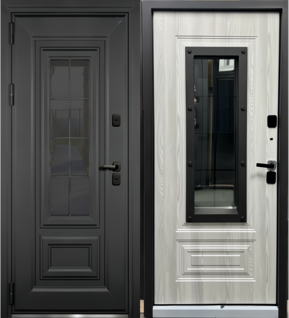 Фурнитура Ручка внешняя — тяговая, ручка внутренняя — раздельная, петли — 3 шт., накладки овальные — хром, ночная задвижка, противосъемные штыри — 2 шт.