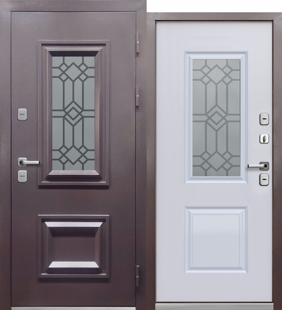 | Фурнитура | Ручка внешняя — тяговая, ручка внутренняя — раздельная, петли — 3 шт., накладки овальные — хром, ночная задвижка, противосъемные штыри — 2 шт. | |